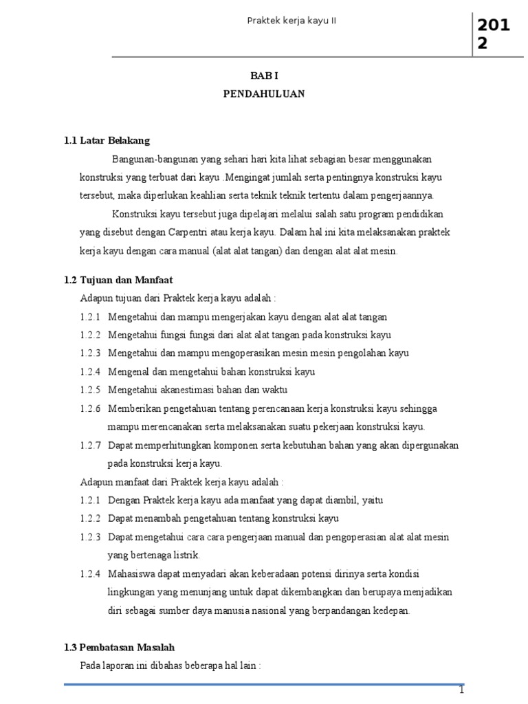Text of laporan kayu lembar kerja. Karena praktek kerja kayu ini erat kaitannya dengan dunia perindustrian dalam hal ini industry meubel (furniture), dengan demikian mahasiswa diharapkan mengerti dan jelas tentang apa yang dinamakan praktek kerja kayu itu. So please help us by uploading 1 new document or like us to download Pengertian, 4 contoh, struktur, kaidah kebahasaan, ciri. Laporan praktikum pengukuran nama :